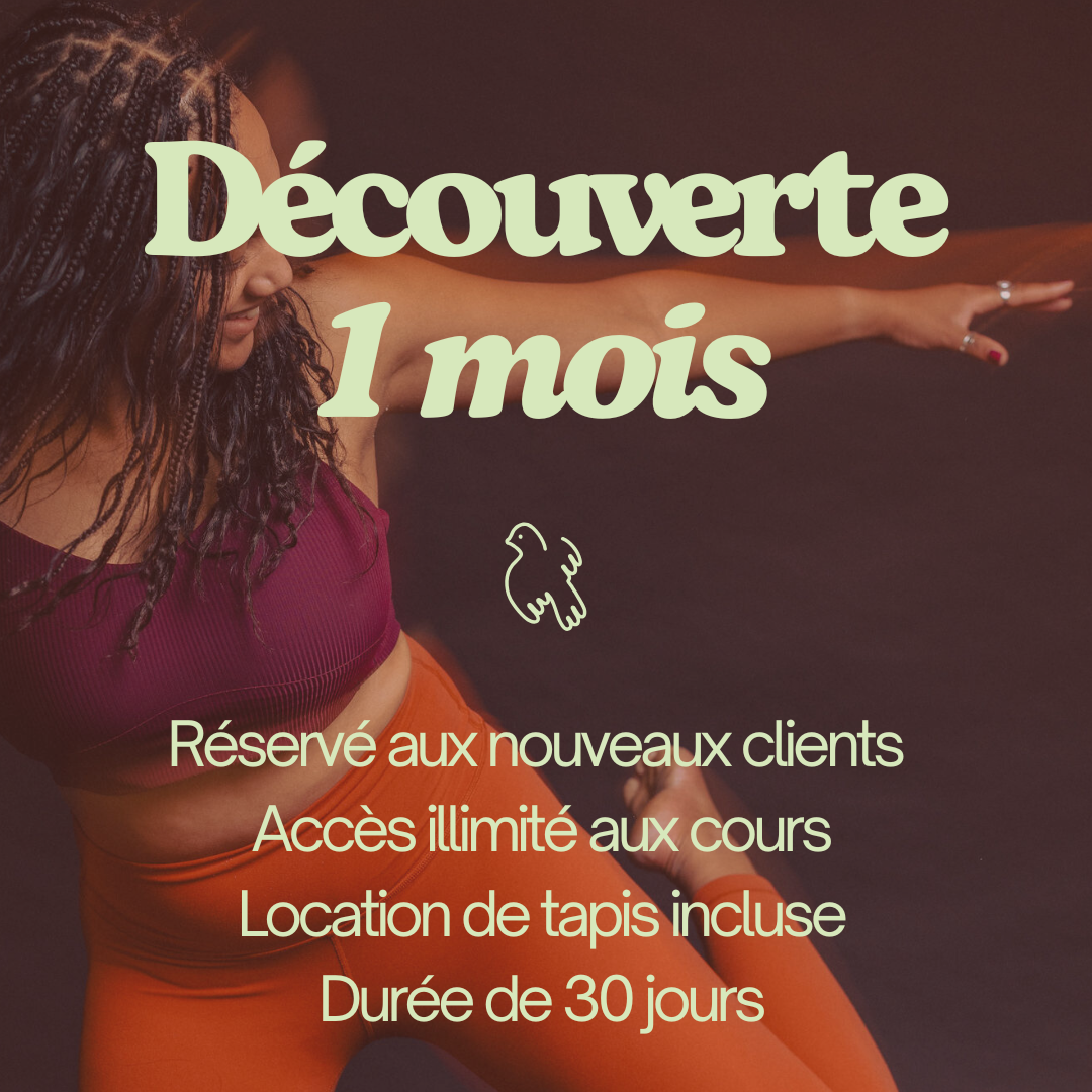 Pendant 30 jours profitez d’un accès illimité pour découvrir nos cours et nos professeurs. La location de tapis est incluse.